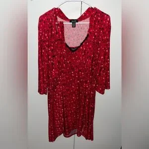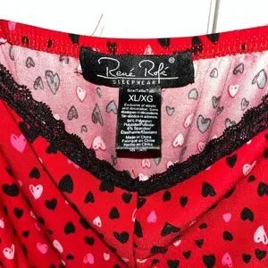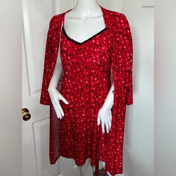 Charming red dress with a playful heart pattern, perfect for any occasion. The vibrant design adds a touch of fun to your wardrobe. Women Red Robe With Pink Hearts and Night Dress Size XL “ Rene Rofe” SKU -W098