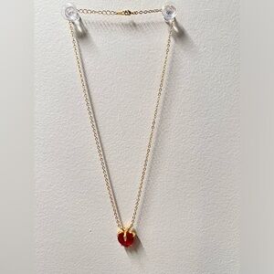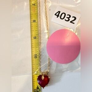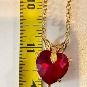 Red Heart Pendant Necklace Gold Tone Chain 4032 P