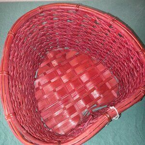 Red Heart Shaped Basket Vintage Woven Coloured Farmhouse Valentines Gift