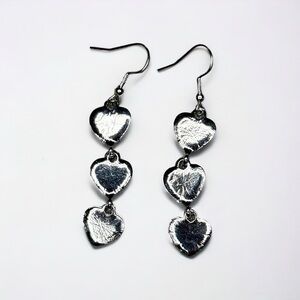 Red Heart Trio Glittery Red & Silver Dangle Earrings. Perfect for Valentine’s Day! 2-1/4”