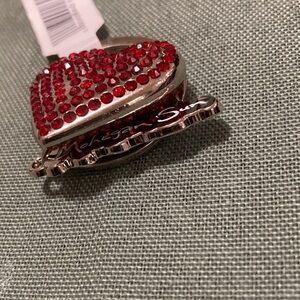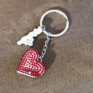 Red Heart shaped charm/Keyholder; with rhinestones on front & back silver toned hardware.