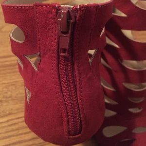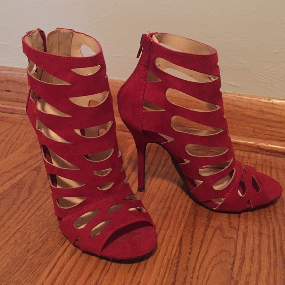 Red heels with zipper closure in back. Great for a formal event or a night out. 4.5 inch heel.