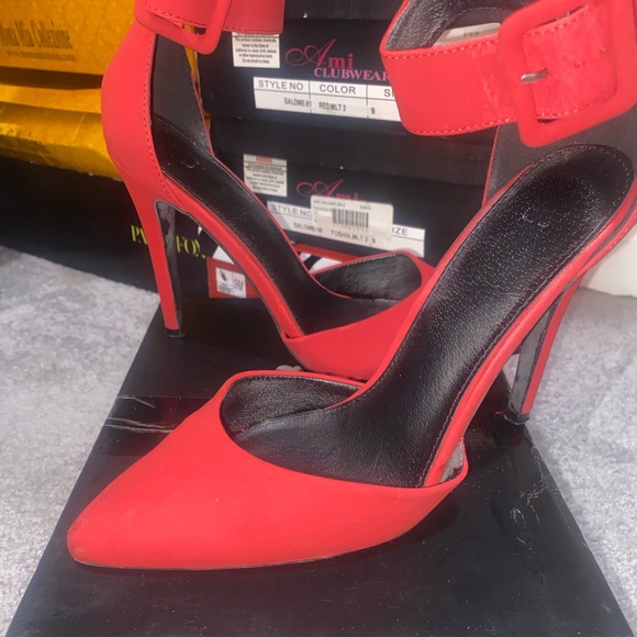 Red Ankle strap Buckle closure. Heel height 4”. Size 9 NO TRADES SALES ONLY SORRY