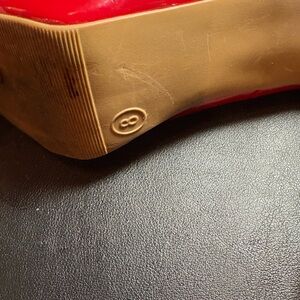 .This is a pair of Mossimo Supply Co. red patent faux leather platform pumps Red heels size 8"