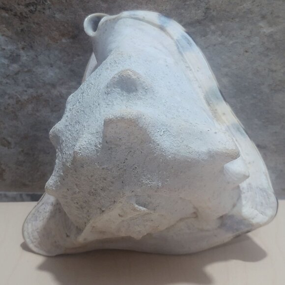 A shell from the family Cassidae, commonly known as helmet shells. More specifically, it appears to be a Cypraecassis rufa, also known as the bullmouth shell, red helmet shell, or cameo shell.
