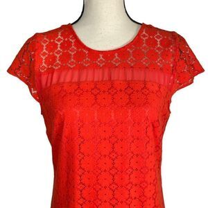 Red Herring Women’s USA 8 Orange Floral Lace Sheer Short Sleeve Dress NWT