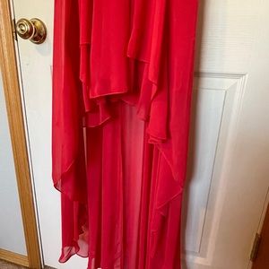 Like new formal dress worn to my senior prom, only worn once. It’s a size 3 and fits true to size. I’m 5’7” so you can see how it fell on me in the photos for length