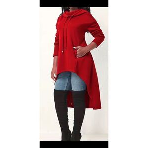 🔥Red High-low casual hoodie, long sleeve drawstring sweatshirt, size Lg/XL (14) by MiniFox
