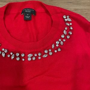 Red holiday sweater with embellished neck line from Ann Taylor Factory