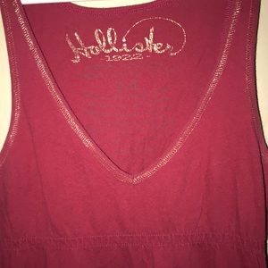 Red tank top In good condition Gold stitching V neck Hollister emblem at bottom left side in front
