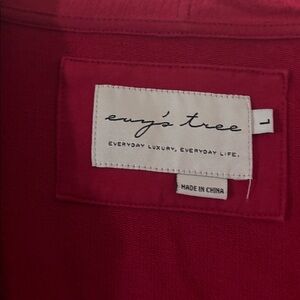 Chic crimson jacket with hood and zip closure. Features elegant ruffle accents.