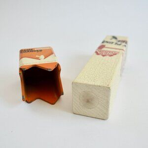 This is a shorter tap handle, measures approximately 7.25 inches long. Shows some normal wear - label on topper is pulled up on the edge a bit. Has some dings in the finish. I believe there was originally supposed to be a magnet on top of the base that is missing. That's how the metal topper would connect to the base. It seems to hold fine as is anyway.