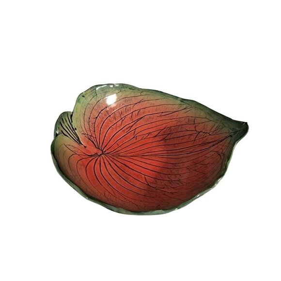 Red Hosta Leaf Bowl Trinket Dish Catch All Dorothy Steele Pottery