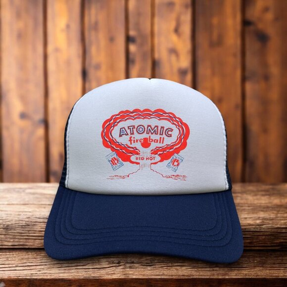 Red Hot Atomic Fireball Candy Mens Trucker Hat Navy Spicy Cinnamon Suckers Cap