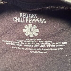 Black tee featuring Red Hot Chili Peppers logo in white. Gently used and broken in.