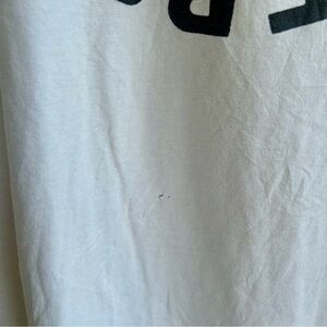 Small hole and stain shown in photos, Worn feel to T-shirt