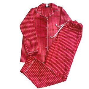 Red Stripe Pajama Set – classic vertical pinstripes with white piping