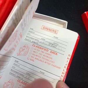 Bright red notebook with gold foil "RED HOT NUMBERS" text. Small devil graphic in black. Slim and bold cover design. Great for notes and lists.