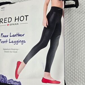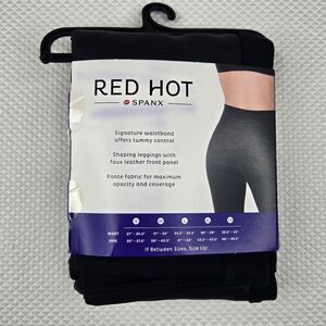 Red Hot Spanx Faux Leather Front Leggings Womens Size Large Black NEW