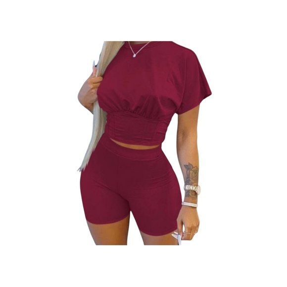 Description: Features: set ,short sleeve ,round neck, solid color.