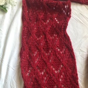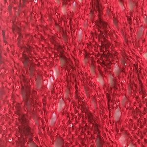 Red knit infinity scarf with little red sequins