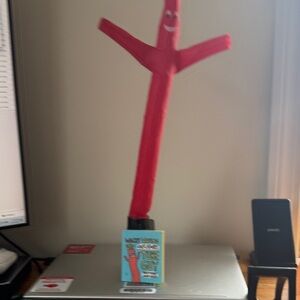 Fun red inflatable tube man desk toy. Perfect for adding a playful touch to your space.