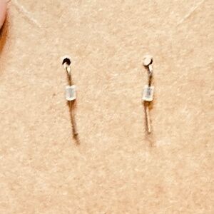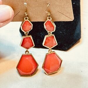 Gold tone. Irregular geometric, clear red acrylic, dangle hook earrings. Vintage. EUC.