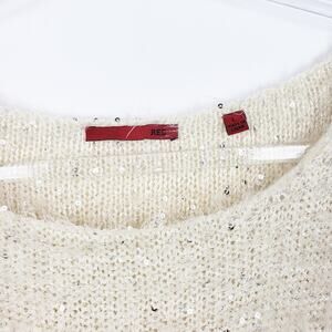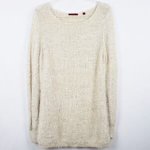 Red - Ivory Sparkle Eyelash Knit Sweater Crew neck Longer Length Size Large