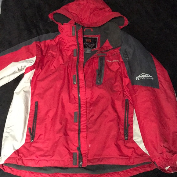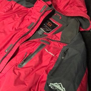 Free Country FCXtreme with many pockets inside and out! Very warm! AE. Zipper and velcro. Zipper pockets and reattachable hat!