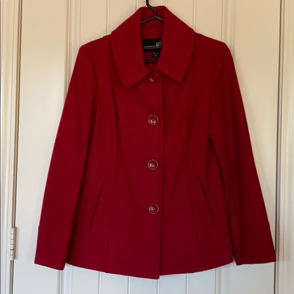 Like new , Red jacket, 26 inch from shoulder to Bottom,sleeves 241/2 long, across chest 17 inch, fully lined, great for the Holidays , nice and warm