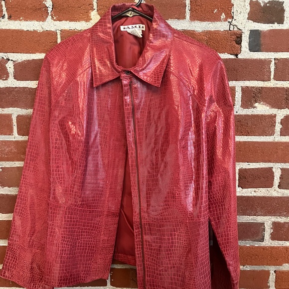 Elevate your style with this stunning faux crocodile jacket. Perfect for any occasion, this red jacket adds a bold touch to your wardrobe.