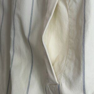 Ribbed blue knit collar, cuffs, and waistband for a secure fit