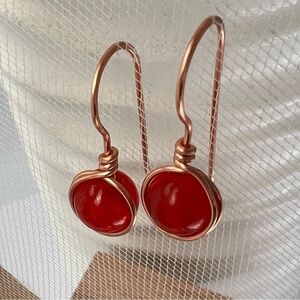 Red Jade and Copper Wire Wrapped Minimalist Earrings