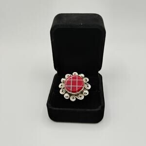 This Red Jasper Inlay Sterling Silver Adjustable Ring features a vibrant red Jasper stone set in a high-quality sterling silver band. The adjustable design allows for easy sizing, making it suitable for a wide range of wearers. The rich red color of the Jasper stone adds a pop of color to any outfit, making it a versatile and stylish accessory. Perfect for those who appreciate unique and eye-catching jewelry pieces.