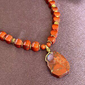 Red Jasper Statement Necklace with Faceted Pendant – Natural Stone Jewelry