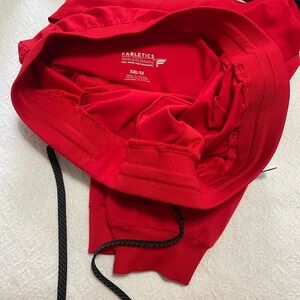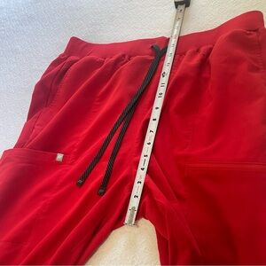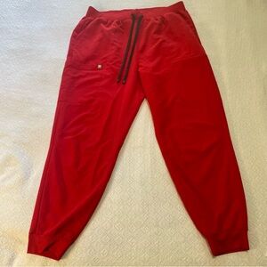 Bold red joggers with adjustable drawstring. Soft and stylish.