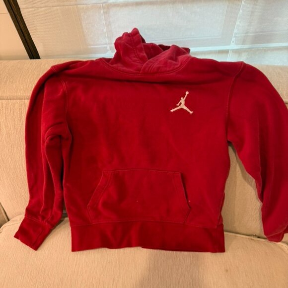 Jordan hoodie, red, youth medium, white logo. Your sporty boy will love this sweatshirt!!