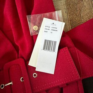 The Julia Jordan jumpsuit exudes elegance with its vibrant red color and sleeveless design, making it a stylish choice for events or professional settings. The belted waist accentuates the figure, while the wide legs offer comfort and a modern look. Functional pockets add practicality to this fashionable piece.