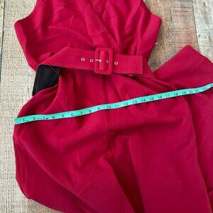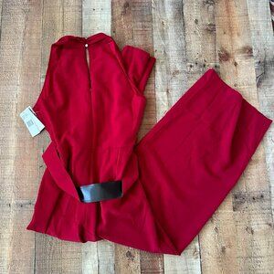 Red Julia Jordan Sleeveless Belted Jumpsuit With Wide Legs & Pockets