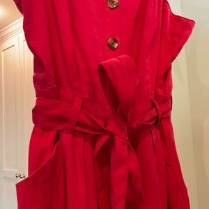 Very stylish! Pockets on front and back. Wide straps so regular bra can be worn- or strapless. Cotton blend