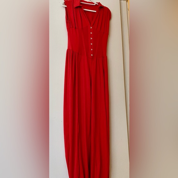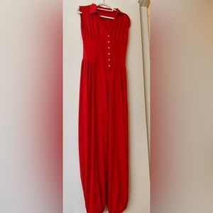 RED M/L JUMPSUIT WITH SPLIT ON BOTH LEG ANS ELASTIC BOTTOM