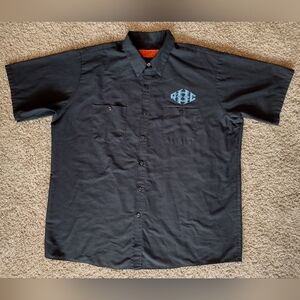 Red Kap Men's size XXL, Button down black Industrial or Utility short sleeve shirt for men. "Hard Headz" Motorcycle club and riding group vibes! Perfect for casual or semi-formal occasions. Measurements included in photos, all questions welcome!