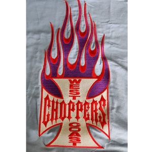 Light blue button up shirt. "Ozzy" name patch on front left. Large West Coast Customs patch on back