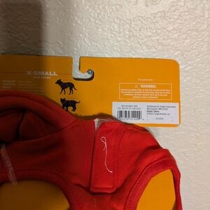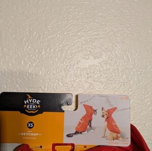 Fun red dog costume with a ketchup design. Perfect for playful pets.