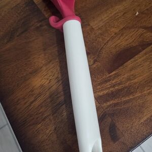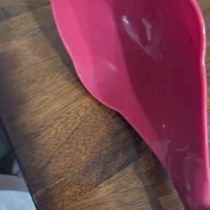 Enhance your kitchen with this vibrant red ladle. Perfect for serving soups and stews with ease.