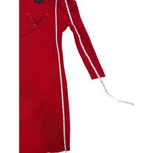 This adorable dress from Almost Famous is perfect for a fun day out! The red knit material is soft and comfortable, and the tie front at the neck adds a touch of flirty style. The knee-length cut makes it versatile for different occasions.