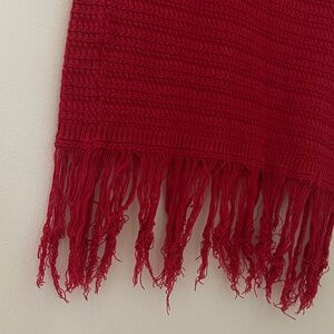 Stylish red knit dress with fringe detail. Perfect for any occasion. Never worn- size Medium in shirt, can fit size 2-6