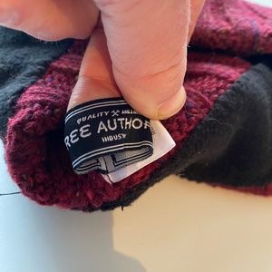 Red knit beanie hat. 50% wool. with fleece lining around the ears.