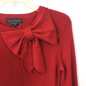 Red Knit Party Dress Bow Knee Length PM Jessica Howard