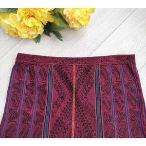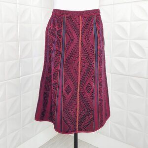 Red Knit Skirt Aztec Midi A-Line Pima Cotton Stretch Fall XL Peruvian Connection